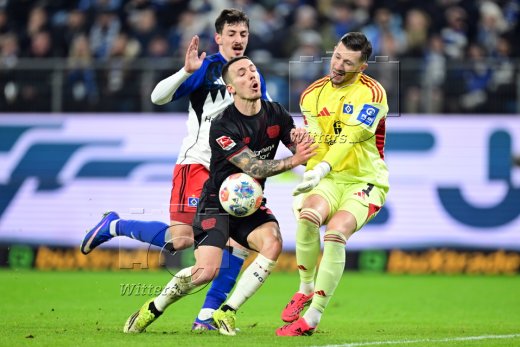 v.l. Giorgi Gocholeishvili, Alejandro Grimaldo, Torwart Daniel Heuer Fernandes (HSV)
