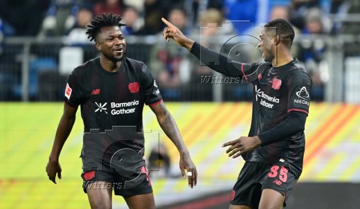 0:1 Tor, Jubel v.l. Edmond Tapsoba, Torschuetze Christian Kofane (Leverkusen)