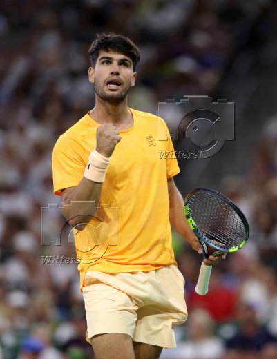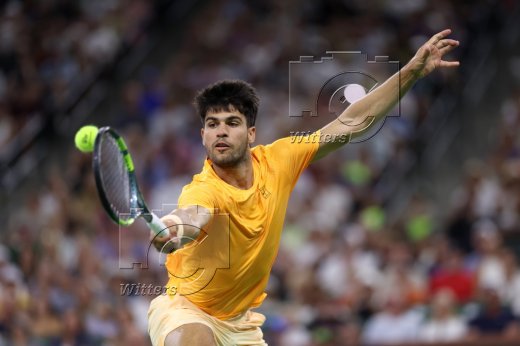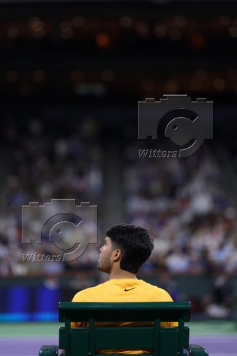 Carlos Alcaraz (Spanien) auf der Anzeigetafel im Indian Wells Tennis Garden