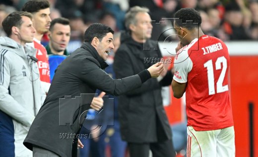v.l. Trainer Mikel Arteta (Arsenal), Jurrien Timber