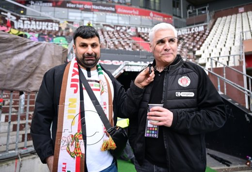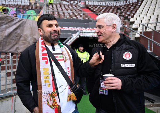 v.l. Serdal Celebi (Blindenfussball, St. Pauli) interviewt Andreas Bornemann (Geschaeftsleiter Sport, St. Pauli) fuer seien YouTube Kanal