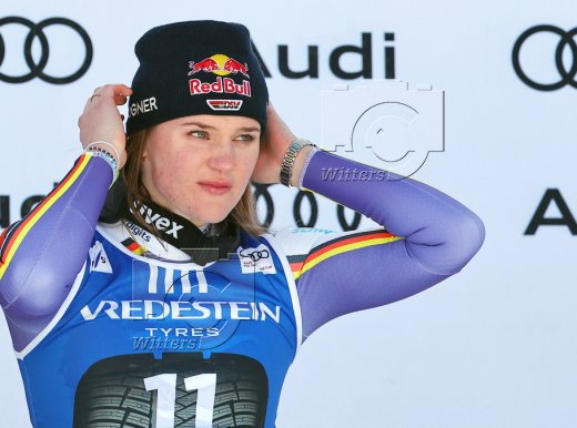 Emma Aicher (Deutschland, 2. Platz, sitzend Mitte) mit Team, Kira-Weidle-Winkelmann (r.)