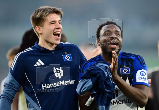 Schlussjubel v.l. Luka Vuskovic, Torwart Daniel Heuer Fernandes (HSV)